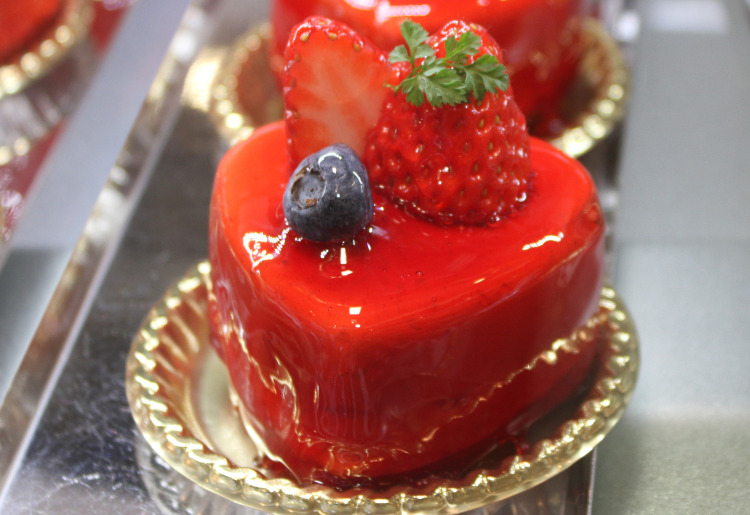 上質なクリームとソフトなスポンジにフレッシュ苺を盛り付けたハート型のケーキです。
